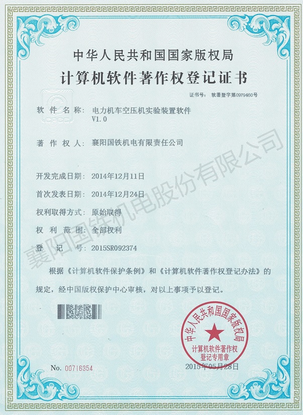 電力機(jī)車空壓機(jī)實(shí)驗(yàn)裝置軟件(軟件著作權(quán)證書)