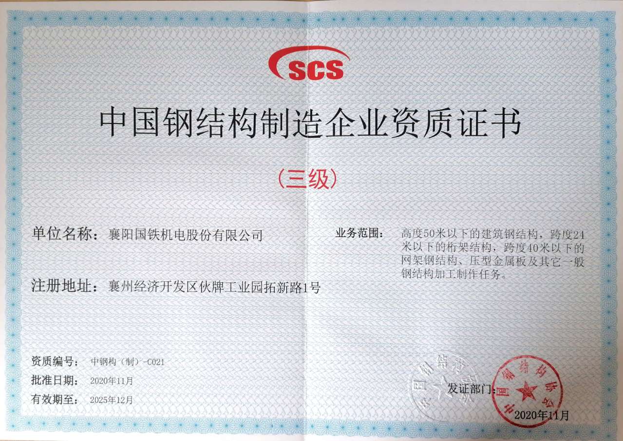 中國(guó)鋼結(jié)構(gòu)制造業(yè)企業(yè)資質(zhì)證書